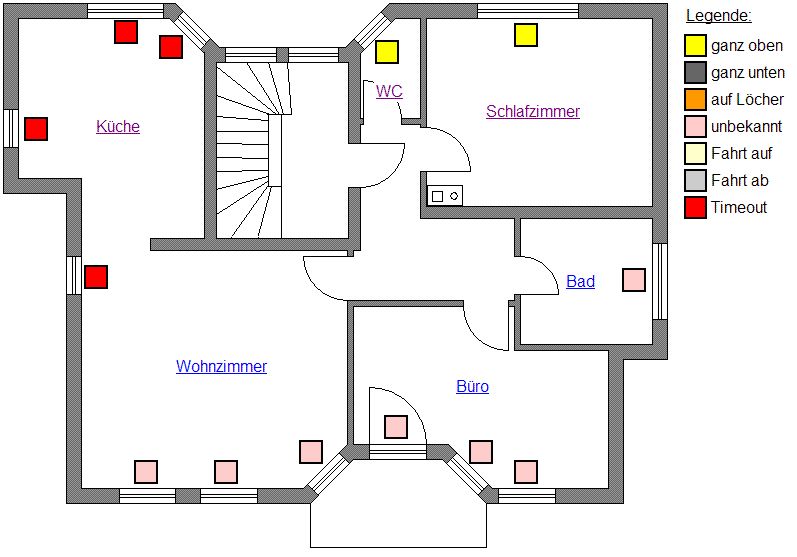 @Frank Esselbach: ja, da hab ich wohl HTTP und HTML etwas durcheinander gebracht. Im Prinzip ist es mir schon klar, ich habe mich nur etwas unglücklich ausgedrückt... @Andi D: wie schließe ich einen Stream? @alle Das mit dem festen HTML-Code mit den Kennungen funktioniert auch nur bei einfacheren Seiten. Ist vielleicht nicht so eine gute Idee... Ich habe auch Seiten, wo die HTML-Längen auch noch von anderen Parametern abhängig sind. So z.B. bei der Einblendung der Statusboxen im Grundriss (siehe Bild). Auf diesem Stockwerk sind es 13 Rolläden. Die selbe Funktion verwende ich derzeit für alle Stockwerke (wird mit Schleifen gemacht, abhängig von der Anzahl der Rolläden auf dem Stockwerk). Im Dachgeschoß sind es nur 7 Rolläden und daher auch entsprechend weniger HTML-Code... Z.B. gibt es die folgende Zeile, je nach dem, wie viele Rolläden vorhanden sind: <div style="position:absolute; left:391px; top:55px; width:20px; height:20px; background-color:#FFFF00; border:2px solid #000000"></div> Ich denke die einfachste Sache wird die mit dem externen RAM sein....