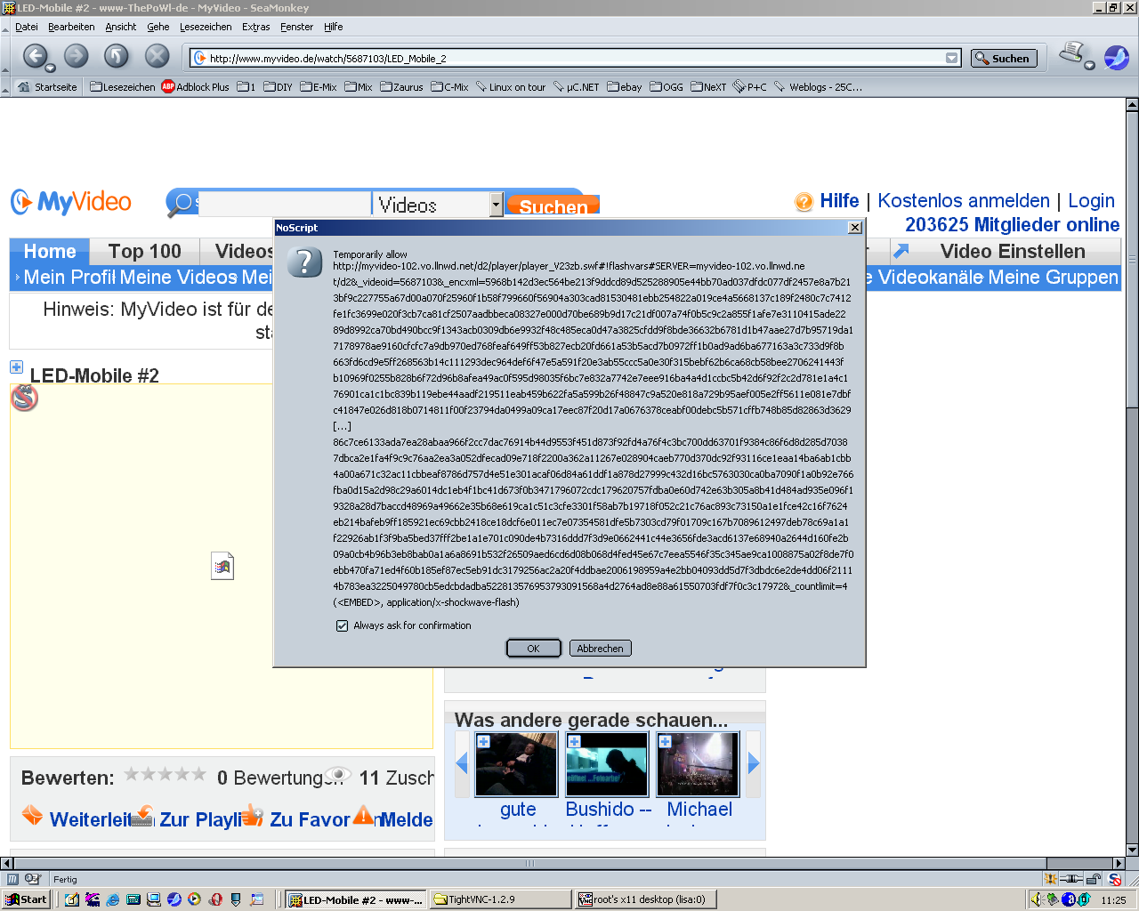 Schöne Idee, gefällt mir. Ich brauche RGB-LEDs, mal sehen ob der Conrad noch offen hat ;-) Vorsicht Offtopic! Vorher hatte ich auf Heise gelesen: Datenschutz: "Mit dem Internet sitzen wir in der Technikfalle" Hamburgs Datenschützer zieht Bilanz: "Dem Einzelnen ist die Beherrschbarkeit seiner persönlichen Daten verloren gegangen."... http://www.heise.de/newsticker/Sitzen-in-der-Technikfalle-Hamburgs-Datenschuetzer-zieht-Bilanz--/meldung/120921 Beim Aufruf von Pauls Link habe ich das plötzlich verstanden (s. Anhang)