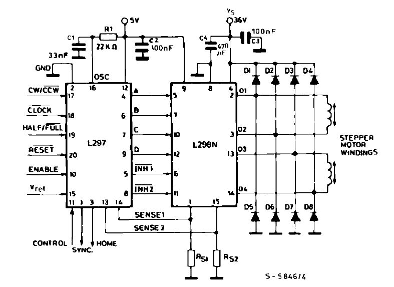 Uref = ?? wie eingestellt ? im pdf.pdf sehe ich keinen Spannungsteiler. Nebenbei bemerkt: es gibt L297 und L297A...einige Pins haben verschiedene Funktion !