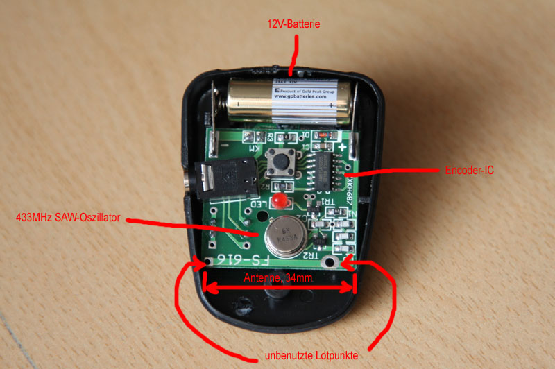 Die Reichweite der Dinger ist sehr bescheiden. Dies möchte ich gerne ändern. Im Netz gibt es viele Leute die ihre Teile modifiziert haben, jedoch sind es alles Laien die mehr aus dem Bereich der Fotografie kommen... Die verbreitetste Lösung ist eine Wendelantenne: "Löte am (auf dem Foto) linken unbenutzten Lötpunkt ein Stück dünne Litze an, die so lang ist wie