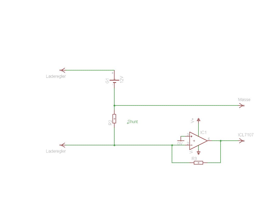 Hallo! Ich möchte mit dem ICL7107 einen Strom messen. Ich verwende dazu einen Shunt in der Masseleitung. Also: (+) ------------------------+ | _|_ | | Verbraucher |_| | +--------------------- (Masse) _|_ | | |_| Shunt Eingang ICL7107 | (-) ------------------------+--------------------- (-) Mein Problem: Die Eingangsspannung am ICL7107 ist negativ zur Masse. Kann ich das Vorzeichen der Messspannung mit einem OPV umdrehen? Also mit einem invertrierenden Vertärker mit dem Verstärkungsfaktor 1?