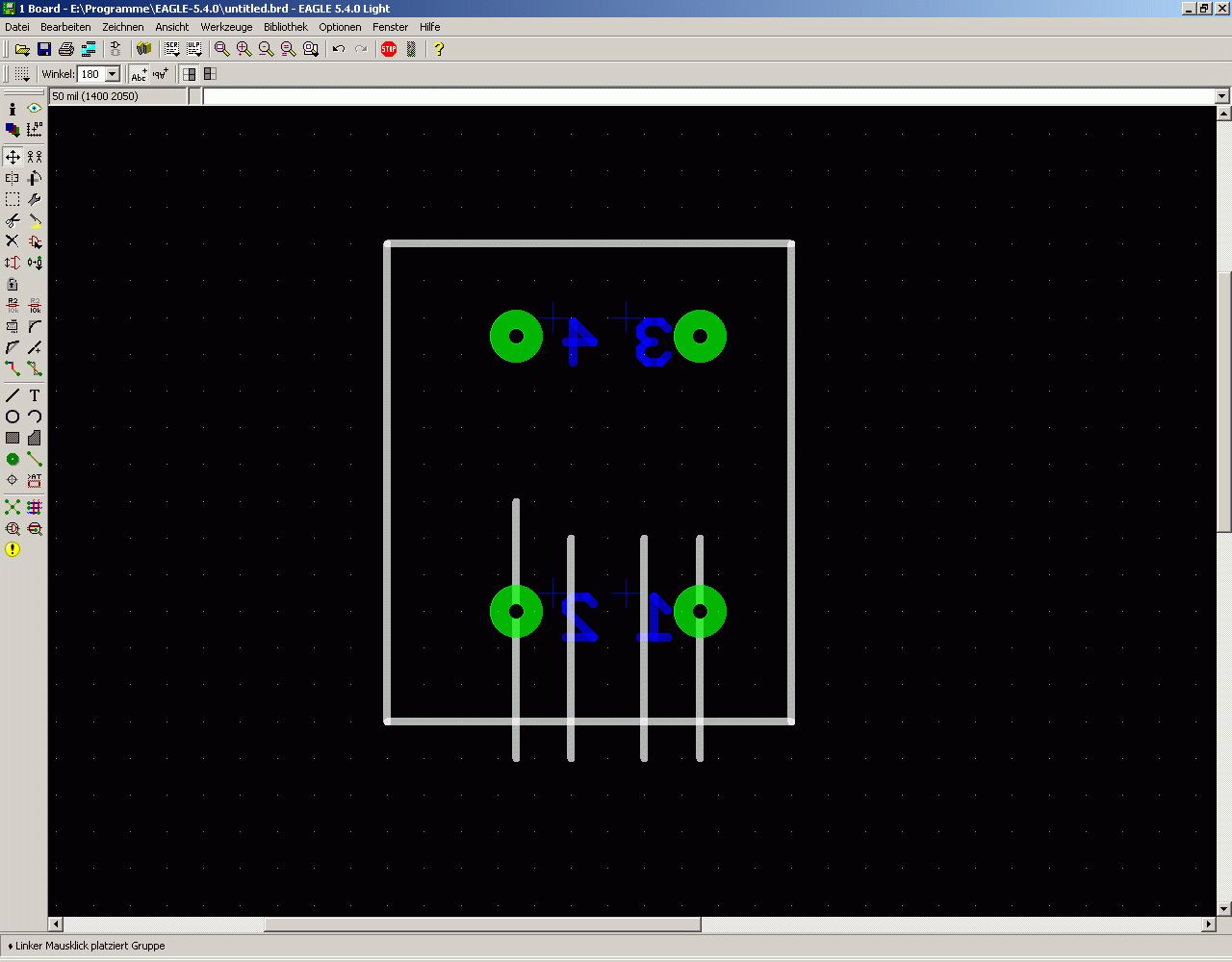 (ok Drehung war natürlich nach links) weitere Vierteldrehung die "1" noch immer 10 mil außerhalb des Rasters