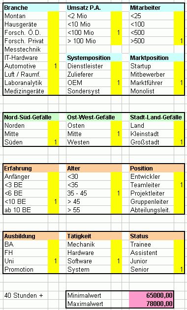 ...ich bin bereits von den 60k€ runter auf 56k€ und diese werde ich auch fordern...runterhandeln können sie ja trotzdem noch...aber das denke ich sollte schon drin sein. Ich werds auf jeden Fall versuchen.... @Bert: Es ist ja nicht nur der Personaler anwesend sondern auch der Projekt- bzw. Abteilungsleiter, manchmal sogar beide. Deswegen denke ich nicht, dass die sich den Spass erlauben einfach mal für Bewerber, die ja sowieso nicht eingestellt werden, ihre Zeit zu opfern...ich kann mir das bei Gott nicht vorstellen... In den Entwicklungsabteilungen werden nach wie vor Fachkräfte benötigt...Finanzkrise hin, Wirtschaftskrise her....