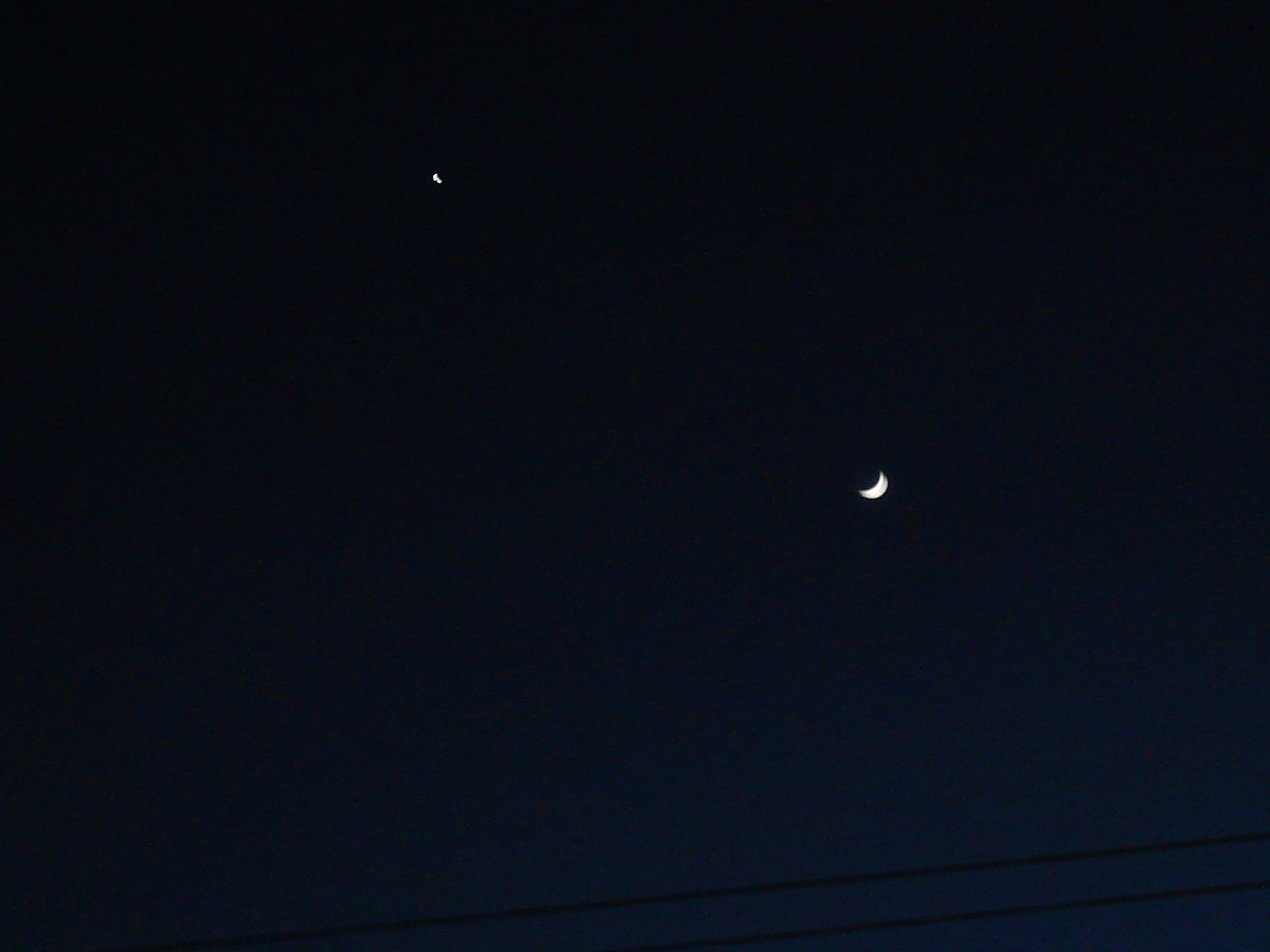kojote wrote: > @Holger > Bilder die nicht verwackeln bei Nacht klappen manchmal mit dem > Selbstauslöser recht gut wenn die Objekte net so schnell abhauen. > Gruß Kojote OK, Venus und Mond sollten einigermaßen stillhalten;-) Nur so am Rande: Meine Bilder sind ohne Auslöseverzögerung freihand entstanden... Wenn man das erste Bild vergrößert, sieht man auch, dass es ein bisschen verwackelt ist.
