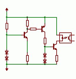 Hallo, ich möchte mit einer externen Spannungsquelle (im Bereich von etwa 5 V - 60 V) einen Eingang an einem AVR Schalten. Die Spannungsquelle soll aber min. 100 mA liefern können, und das ganze soll galvanisch getrennt vom AVR sein, sprich zwischen der "Auswerteschaltung" und dem AVR sitzt ein Optokoppler. Für diesen Zweck habe ich mir zunächst eine Transistorkonstantstromquelle gedacht http://www.elektronik-kompendium.de/sites/slt/schalt/02102531.gif so dass eben diese 100 mA fließen können und auch auf 100 mA begrenzt wird. Die Frage ist nun wie ich die Information "Konstantstromquelle ist im Regelbereich" an einen Optokoppler weitergeben kann. Zwischen dem unteren Ende der Schaltung und GND den Optokoppler in Reihe zu schalten geht nicht, weil selbiger ja nur wenige mA haben möchte. Funktioniert dass wenn ich zum Optokoppler noch einen Parallelwiderstand ? Wenn ja wie kann ich den berechnen, wenn nein, welche andere Möglichkeit gibt es ? Gruß Ja mann