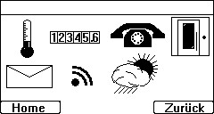 Ach ja, vielleicht sollte ich die einzelnen Screens kurz kommentieren: das vorherige Bild ist sozusagen der "Einstiegsbildschirm" oder im angelsächsischen auch "Home" genannt ;) Der nächste, also dieser hier, ist eine Verteilung auf die Funktionen rund ums Haus.