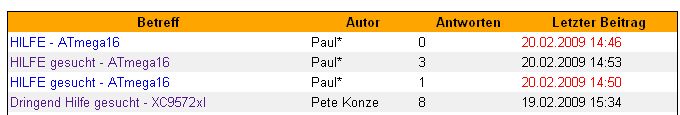 Hallo, ich versuche grade auf einer selbst zusammengelöteten Platine (Schaltplan siehe Anhang) eine Aufgabe zu lösen, komme allerdings überhaupt nicht voran, da ich keine Ahnung von C-Programmierung oder auch von Mikrocontrollern habe. Vielleicht kann mir ja jemand helfen - habe auch schon mal ein Probeprogramm (Lauflich mit AD-Wandler) laufen lassen, verstehe dabei aber auch schon (mangels Kenntnissen) wie das genau arbeitet. Die beiden angegebenen Funktionen sollen gemeinsam im Atmega16 des Demo-Boards realisiert werden! Die Beschreibung der Funktionalität soll in der Programmiersprache C erfolgen! Realisieren eines Lauflichts: Mit einem der beiden Potentiometer soll die Frequenz (Weiterschaltung von einem Status in den folgenden Status) des Lauflichts im Bereich von 0Hz (Stillstand) bis 2Hz (Genauigkeit: +/-0,1Hz) möglichst fließend einstellbar sein. Die Taktung soll mit Hilfe von einem der eingebauten Timer realisiert werden und es soll mindestens eine zugehörige Interruptserviceroutine sinnvoll verwendet werden! Hierzu soll mindestens mit einer Genauigkeit von 10 Bit gearbeitet werden. Durch die Schalter 1 (Bit 0) und 2 (Bit 1) (Beschriftung beachten!) sollen die verschiedenen Darstellungen des Lauflichts ausgewählt werden können. Ist ein weiterer Schalter aktiviert soll die Funktionalität des Lauflichts deaktiviert sein um eine Nutzung der LED's für andere Aufgaben zu ermöglichen. Bei Umschaltung soll das nun ausgewählte Lauflicht, beginnend im ersten Zustand, in der beschriebenen Abfolge mit der eingestellten Frequenz durchlaufen werden. Diese seien wie folgt belegt1 : „00“: „+-------“ → „-+------“ → „--+-----“ → „---+----“ → „----+---“ → „-----+--“ → „------+-“ → „-------+“ → usw. mit „+-------“ „01“: „+------+“ → „-+----+-“ → „--+--+--“ → „---++---“ → „--+--+--“ → „-+----+-“ → „+------+“ → „--------“ → usw. mit „+------+“ „10“: „++------“ → „-++-----“ → „--++----“ → „---++---“ → „----++--“ → „-----++-“ → „------++“ → „-----++-“ → „----++--“ → „---++---“ → „--++----“ → „-++-----“ → usw. mit „++------“ „11“: „+-------“ → „++------“ → „+++-----“ → „++++----“ → „+++++---“ → „++++++--“ → „+++++++-“ → „++++++++“ → „-+++++++“ → „--++++++“ → „---+++++“ → „----++++“ → „-----+++“ → „------++“ → „-------+“ → „--------“ → usw. mit „+-------“ Grundeinstellung: Zu Beginn sei die mit S7 gewählte Variante voreingestellt! Realisieren einer Addition: Ist das Lauflicht nicht aktiv sollen die Stellungen beider Potentiometer zyklisch, in der zugehörigen Interruptserviceroutine, mit einer Genauigkeit von 7 Bit ermittelt werden. In der Hauptroutine der zu entwickelnden Software sollen diese Werte nun addiert werden. Das Ergebnis der Addition dieser beiden 7-Bit-Zahlen soll über die 8 LED's ausgegeben werden. Das Leuchten einer LED signalisiert dass dieses Bit gesetzt ist!