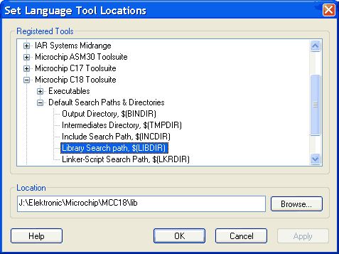 Ja das gibt es! in Mplab Project -> Build Options... -> Project Dort kannst du im Directoires für alles die Pfade Eingeben. Einfache auswähelen und über New neuen Pfad anlegen.