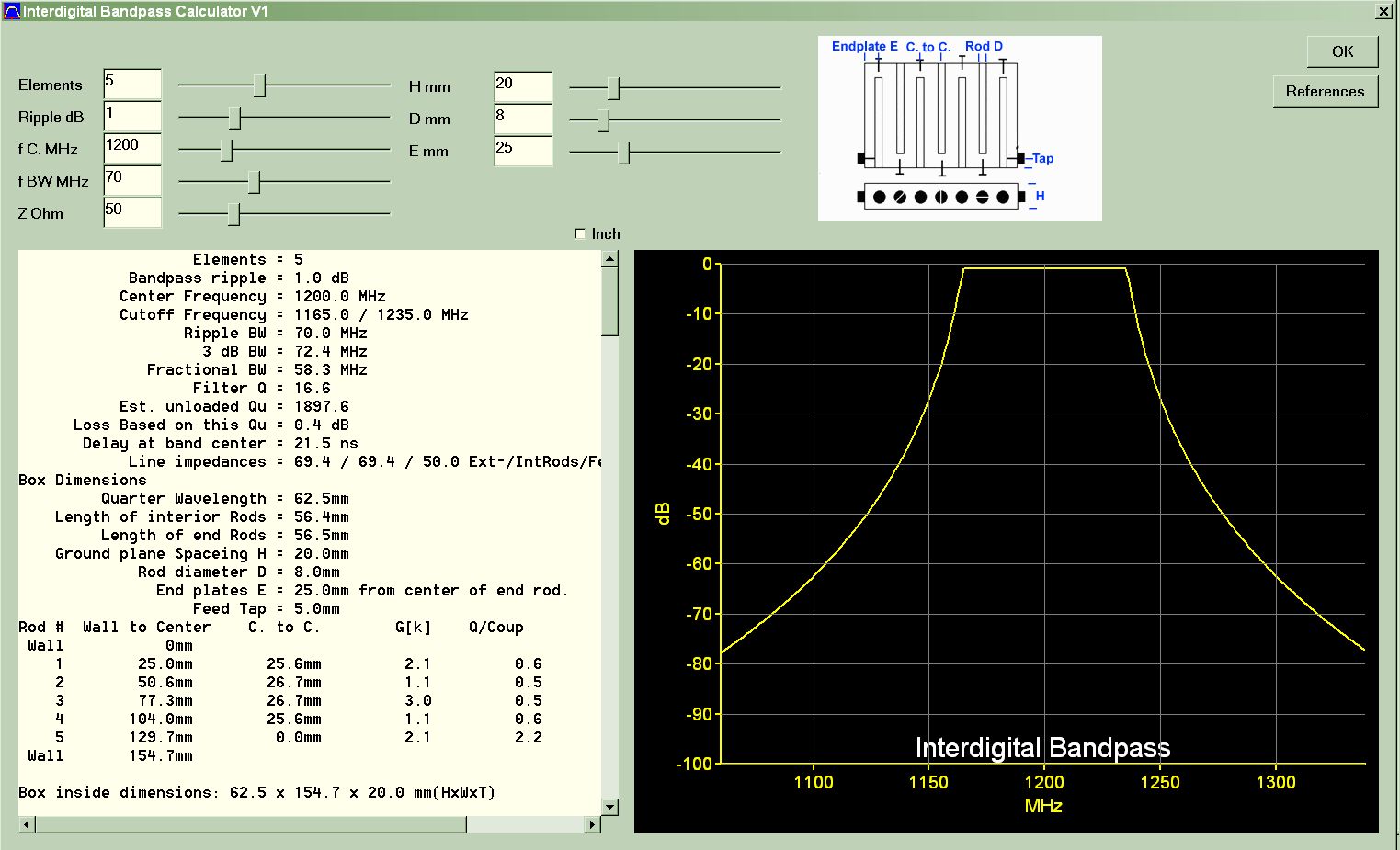 >Wo gibts denn das tolle Design-Prog für Interdigitalbandpässe? Den Algorithmus habe ich von hier: Interdigital Bandpass Filter Designer http://www.wa4dsy.net/cgi-bin/idbpf war in einem von Olaf's Links vergraben. Hab nur ein paar Trivialänderungen vorgenommen und zum Rumspielen ein UI drübergestülpt. Hab noch keine Ahnung ob das realistische Werte liefert.