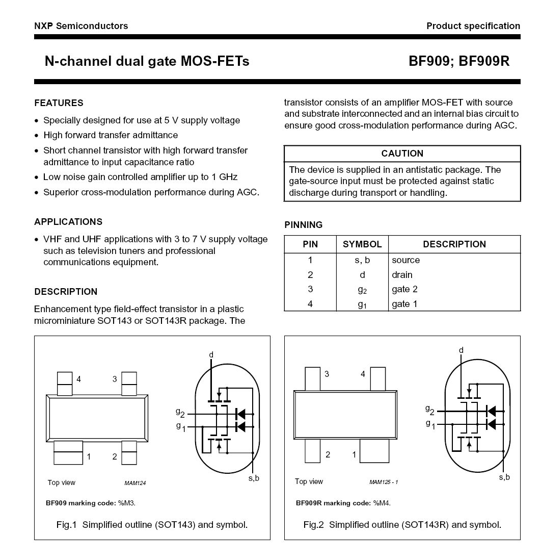 23mA ist in der Tat etwas hoch. Mach mal bei einem frischen Exemplar sicherheitsheitshalber noch einen Widerstand an Drain dran. Gate 1/2 verwechselt? (von der BF1009S.. Serie gibt es verschiedene Gehäusevarianten) >Das Maximum der Verstärkung war bei einer AGC-Spannung von ca. 2,6V Das ist ja auch laut DB so zu erwarten, aber danach abfallen sollte er nicht. Tritt das auch bei anderen Exemplaren auf? An Gate 1 Spannung überschritten? (max. 3V laut DB) Der BF1009S ist eigentlich nur für Kleinsignalverstärkung/Abschwächung ausgelegt. Oberhalb von ein paar 10mV treten nach meiner Erinnerung Signalverzerrungen auf.