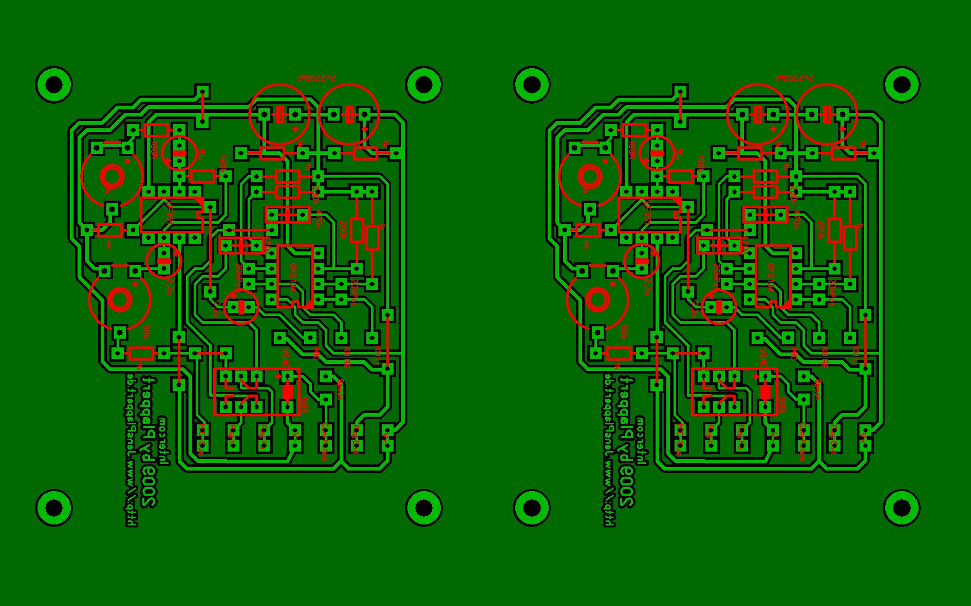 Ich mache nur Isolationsfräsen, von daher ist es ja wurschd ob mit oder ohne, da hast du Recht. Ich erstell solche Files gelegentlich falls es mal jemand nachätzen will (Solche Sachen landen auch auf meiner HP). @ AC/DC: Danke für dein Lob! Die Platine hat deshalb "keine" Kontur, weil sie von der größe her einer Eurokarte entspricht und in die Gehäuse die ich habe halbes Euroformat sowieso perfekt rein passt :-). Gruß, Jens
