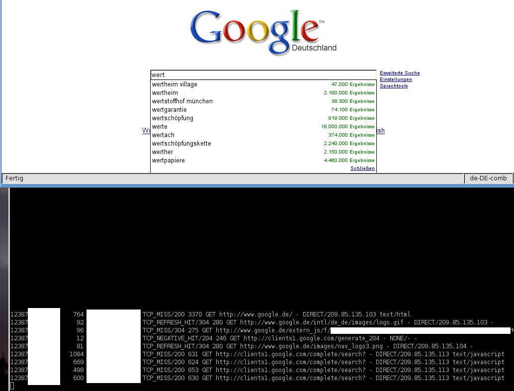 Moin, kann es sein das Google schon bei der Eingabe der Suchanfrage die Daten bekommt und auswertet ? Ich habe mich gewundert warum bei Eingabe eines Zeichens in die Eingabemaske die Statusleiste den Aufruf einer Seite signalisiert. Ich benutze die Firefoxe. ...