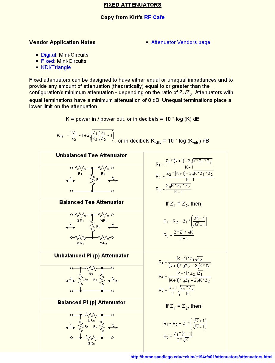Ich habe die praktischen Formeln die "Michi Kupfer" hier beigefügt hat, auf einem Excel-Worksheet in VBA-Makros programmiert. Praktisch und bequem für Leute, die öfters Dämpfungen berechen müssen... Worksheet öffnen (Makros aktivieren) und die Wunschwerte in den "gelben" Felder eintippen. Falls der Attenuation-Wert kleiner ist als der mögliche Minimum-Loss, dann wird automatisch der Minimum-Loss Wert berechnet und eingefügt.