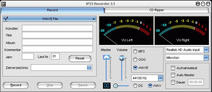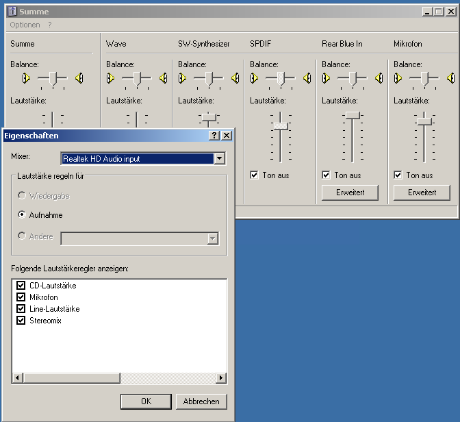 Vielen Dank für eure Tipps. No23 habe ich auf meinem Rechner installiert. Es sieht aber so aus, daß Windows (Anhang) die Auswahl der Audioquellen einschränkt (CD, Mikrofon). Kann ich die Auswahl ändern?