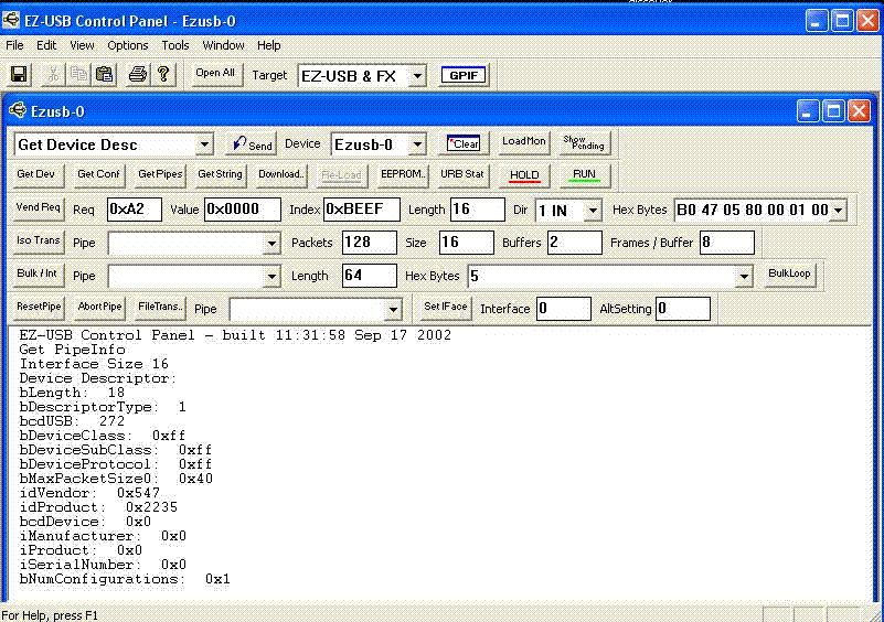 kinder ... 1. - jumper abziehen 2. - Cyconsole oder Control Center installieren, die sind beide ? (auf jeden fall Control Center) in dem SuiteUSB.NET ( http://www.cypress.com/?rID=34870 ) beinhaltet. 3. - board anschliessen, sollte als Cypress FX2 - No EEPROM (0x8613) erkannt werden, evt. die triber nochmal manuel ändern auf die aus dem SuiteUSB.net verzeichniss ( ...Programme ??\Cypress\SuiteUSB.NET\Driver ) 4. .iic erstellen (mit hex editor) 5a. CyConsole starten und lg EEPROM clicken (die ertsllte .iic auswählen) (CyConsole.exe) oder 5b. Control Center starten, den Cypress FX2 - No EEPROM (0x8613) in dem hauptfenster selektieren, menü "program FX2 -> 64kb eeprom" wählen (die ertsllte .iic auswählen) (CyControl.exe) 6. Jumper wieder rein, reset oder noch besser von USB abziehen und wieder anschliessen Das wars schon, jetzt sollte windows nach passenden triebern für das gerät der durch den inhalts des EEPROM identifiziert wird verlangen. Evt. LESEN ! Diese procedur ist hier schon mehrmals beschrieben worden. Was die 650mb chinesische CDs angeht, die sind interessant - aber nur für die die selber was mit FX2 machen wollen und nicht nur andere leute arbeit klauen wollen.