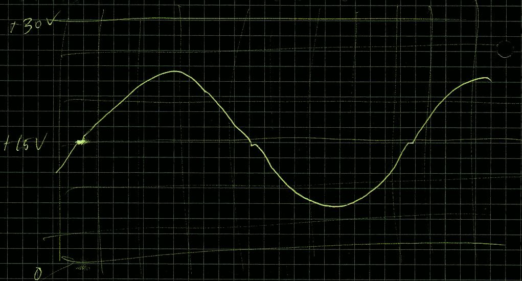 Danke f.d. Tip. Habe übrigens vorhin nochmal mit einem Lastwiderstand (3K3 gegen Masse) versucht. Die Übernahmeverzerrung ist weg. Aber die Hose rutscht sozusagen von der Taille runter auf die Fußgelenke. (Siehe Bild) Eine Skizze wäre fast besser als das Photo. Will sagen, die Übernahmeverzerrungen sind treten jetzt auf, wenn das Signal etwa in den Bereich unter +4V eintaucht. Ich habe zwar damit einen Bereich von etwas Vpp=22V bei 30V Versorgungsspannung, aber schön ist das eigentlich nicht. Lieber ich habe ein klares Clipping als so eine Phase mit Übernahmeverzerrungen und dann erst Clipping. Wie kriegt man denn die Übernahmeverzerrungen ganz weg oder anders gefragt, wo und wie kann man den LM358 überhaupt sinnvoll einsetzen, wenn es solche Übernahmeverzerrungen gibt? -- Christoph