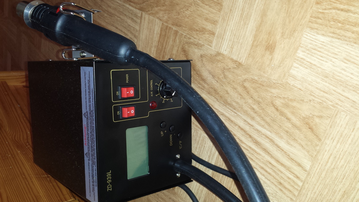 Die Heizung der ZD-939L ist extrem billig, das ist ein Draht, der aus verschiedenen Wickel- oder Faltebenen besteht. Das ist eine ganz miese Qualität. Das Gerät sieht innen auch nicht so toll aus. Ich habe mir die 858D Lötstation für 36,99 Euro (Sofortkauf) bei einem Chinesischen Händler auf eBay gekauft und bin damit sehr zufrieden. Das Paket war am nächsten Tag bei mir, das liegt daran dass die Ware schon hier in Deutschland ist und nur noch verschickt wird. Die Heizung ist viel robuster ausgelegt. (Spiralförmig gewickelter Draht auf einem großen Keramikkörper der die Drähte in Position hält) Das Gerät hat auch einen Nachlauf des Lüfters, damit die Heizung gekühlt wird wenn man das Handteil wieder in die Ablage legt. Im Inneren befindet sich ein AVR Controller der alles steuert und die Firmware kann man auch verändern. Der kleine Radiallüfter in dem Handteil ist auch recht leise, meist nutze ich nur die Lüfter-Stufe 2 bei einer Temperatur von 260°C bis 300°C. http://blog.spitzenpfeil.org/wordpress/projects/youyue-858d-hotair-station-modifications/