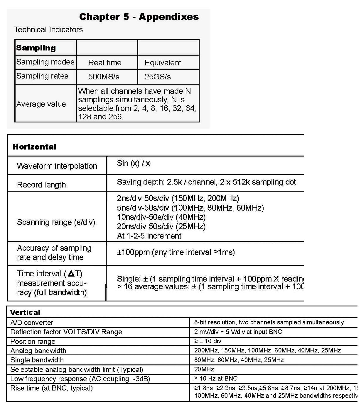 Diese ziemlich sinnfreien 25G dürften das Ergebnis des Datasheets vom S&H sein. Praktisch kontrollieren kann das sowieso niemand. Ich frag mit eher, womit man besser dran ist. Mit diesem 100MHz Teil mit extrem geringer Sampletiefe - oder mit den günstigere Rigol DS1052E mit zwar nur 50MHz Bandbreite aber 1Mio Samples.