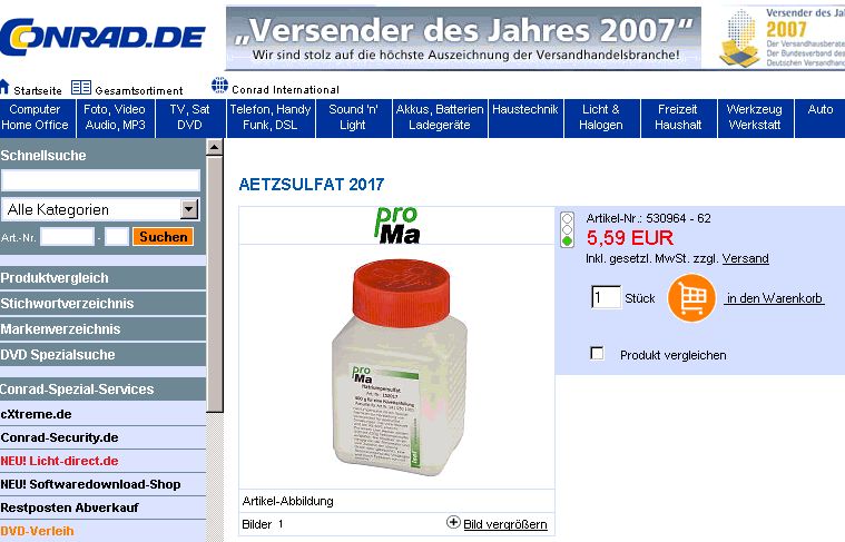 >Das Natriumpersulfat kann mit Natronlauge (vom entwickeln), >falls man die Belichtungsmethode verwendet, neutralisieren. >Wenn die neutralisierte Lösung farblos ist, müßte die >anstandslos im Waschbecken entsorgt werden können. Neutralisieren ist schonmal nicht schlecht aber das Hauptproblem liegt nicht im PH-Wert begründet (es würde auch genügen die Lösung mit Wasser zu verdünnen), warum man NaPS nicht im Waschbecken entsorgen sollte sondern im Kupfer, das darin gelöst ist. Das ist nämlich für die Tierwelt, insbesondere das Klärwerk und deren Bakterien, nicht so ganz gesund. Also erstmal das Kupfer rausholen aus dem gebrauchten NaPS und dann darfs die Toilette runter. Als Privatmensch jedoch hat man ja den Vorteil, gebrauchtes NaPS kostenlos bei der örtlichen Entsorgung abzugeben. Die haben das entsprechende Equipment um das NaPS vom Cu zu trennen. Das ist nämlich nicht ganz so einfach.