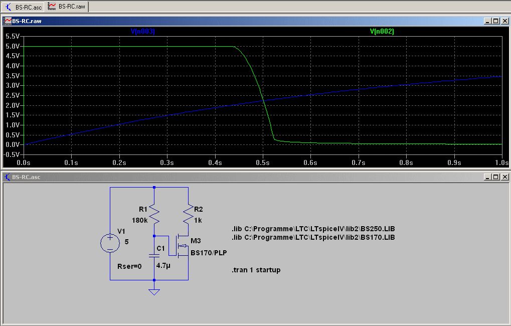 @Markus: Versteh mich bitte nicht falsch aber kann das mit deinen angegebenen Werten stimmen? Ich rechne und rechne, aber bei mir kommt nur eine Verzögerung von ca. 0,09 Sekunden raus. Lt. Datenblatt hat der BS170 eine typische Gain Threshhold Voltage von ca. 2 Volt. Tau ist 0,47 Gerechnet nach der Formel t =Tau * ln ( (U0-UThresh)/U0)) bzw. t = -Tau * ln (1 - U(t)/U0)) (formeln nur umgestellt) Was mache ich falsch in meiner Rechnung oder wie krieg ich jetzt die 0,5s (es dürfen auch eine 1s sein) Verzögerung hin? Danke!