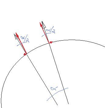 Schwerer Löter schrieb: > @ Karl heinz Buchegger (kbuchegg) (Moderator) > >>2 infinitesimal dicht nebeneinander liegende Teilchen um Umfang werden >>jeweils von der Zentripedalkraft vom Mittelpunkt weg belastet. Aber die >>Radiusvektoren der beiden Teilchen sind nicht gleich. Daher kann man die >>Zentripedalkraft vektoriell in jeweils eine parallele Komponente und >>eine Komponente in Richtung des anderen Teilchens (bzw. von ihm weg) >>zerlegen. Übersteigt diese Kraft/Querschnitt die Zugfestikeit, dann >>reißt das Material. > > klingt gut, kannste mal zeigen wie man das rechnet? Die Details überlass ich dir. 2 Teilchen um Umfang sind voneinander um den Winkel alpha versetzt. Damit kann jeweils die (schwarze) Zentripetalkraft in eine parallele und eine dazu senkrechte stehende Kraft (rot) zerlegt werden. Das ist normale Vektorzerlegung, sprich Trigonometrie. Ob das wo hin führt? Keine Ahnung! Aber es ist zumindest ein Ansatz.