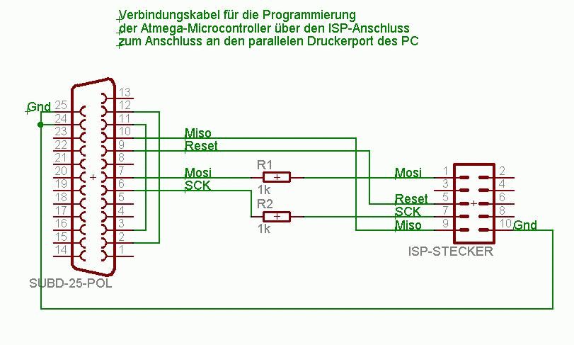Bei der Schaltung kommts auf die Treiber an der Parallelschnittstelle an. Wenns die alten 74LS.. IC's sind, gehts meist garnicht, weil die keine für MOS-Technik ausreichenden H-Pegel liefern. Bei den heute üblichen hochintegrierten IC's geht es durchaus bis 1m Länge, die liefern ja vollen Spannungshub. besonders da die Belegung der Adern beim Flachkabel für 10-Pin-Stecker ja in der Form Masse-Signal-Masse-Signal... erfolgt und damit etwas gegenseitige Abschirmung schafft. Also: 2,4,6,8 untereinander verbinden ist besser, wenns das Board zulässt, manchmal werden 4,6 und 8 mit weiteren Signalen belegt.