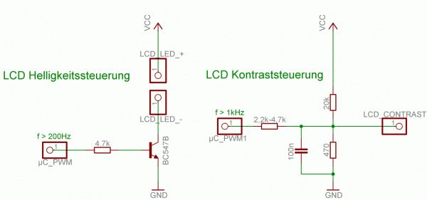uC-Ausgang --- R=1K --- LCD-Contrasteingang