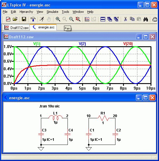 Wenn wir jetzt mal 0Ohm(Supraleitung) annehmen, dann besteht die Verbindung immer noch aus einer Induktiviät. Die Enrgie pendelt dann komplett zwischen den beiden Kondensatoren hin und her. Das kann man auch schön mit LTspice simulieren.