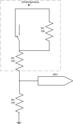 Hallo, wie überwache ich am besten einen Schalter? Ich habe eine Zeichnung angehängt. 0V am Eingang => Leitungsbruch 5V am ... => Kuzschluss 2,5 V ... => Schalter in Ruhestellung 1,66 V... => Schalter ausgelöst ist das so OK? Oder gibt es eine bessere Möglichkeit?
