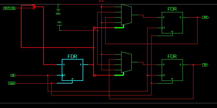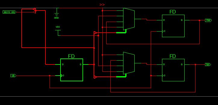 > Ist meine Case Anweisung nicht richtig beschrieben oder warum wird in > meinem Design kein Schieberegister beschrieben? Da ist doch ein Schieberegister drin (Screenshot: blau). Das geht dann auf die Select-Eingänge des MUX. > ~200MHz. ... 500MHz ... ~400MHz. Ich verwende einen Spartan3-400 Speedgrade -4. Das Originaldesign hat bei mir 260MHz. Dein gepostetes Design hat 367 MHz. Mit den aktivem synchronen Zurücksetzen (sync_l <= '0') dann noch 238 MHz. Die Geschwindigkeitsverluste kommen offenbar dadurch, dass in der Originalbeschreibung und in deiner "langsamn" Beschreibung FFs verwendet werden, die eine Kombinatorik vor dem synchronen Reset-Eingang haben. Ich habe mal die Originalfassung analysiert und auf diese Variante umgeschrieben: