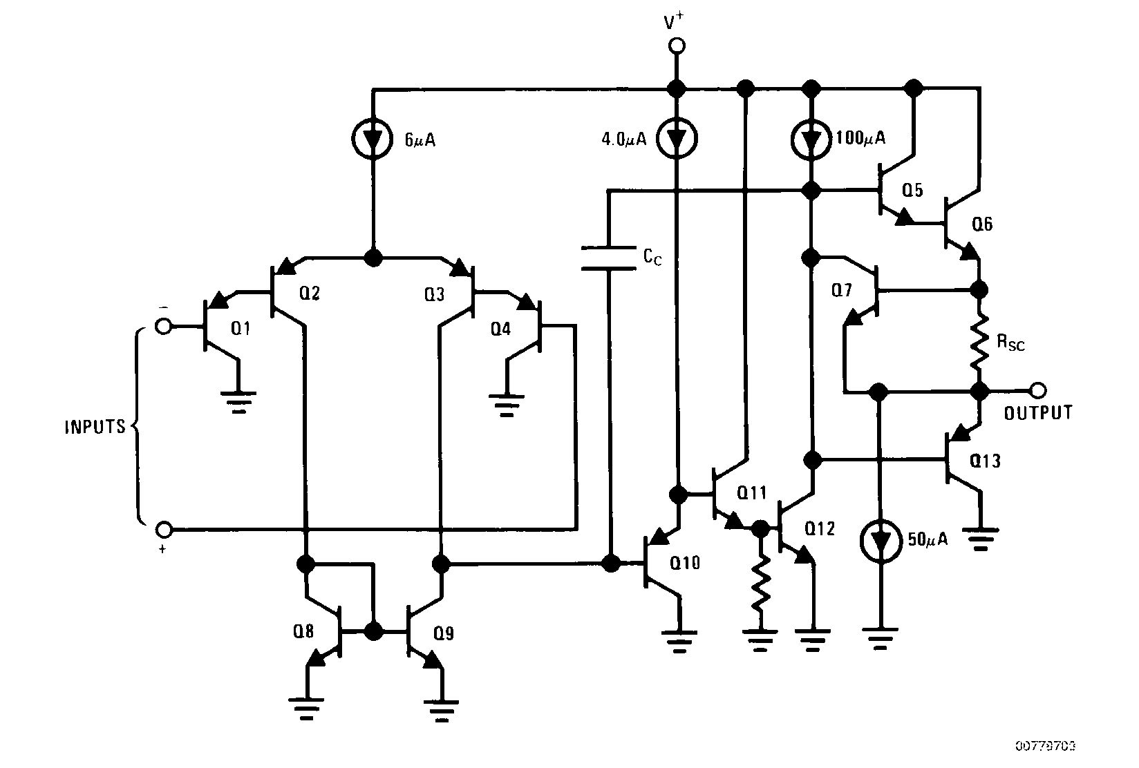 > Immerhin muss der arme Ausgang des LM358 den Strom der Gegenkopplung > sinken, womit der Ausgang nicht mehr bis auf 0V kommt. Richtig > Ja, ist richtig, aber da fließt bei 10V am Eingang und zweimal 10k > gerade 500u rein. Hmm, also Q13 kann 500 uA nicht bei 0 V sinken. Dafür wär eig. die 50 uA Stromsenke da. Dämmerts?