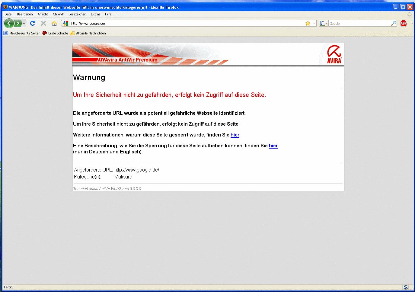 Vielen Dank für eure Antworten. Der Aufruf von Google funktioniert wieder. Aber erst nachdem ich das AntiVir-Update per Hand eingespielt habe (dachte bis jetzt, daß dies automatisch abläuft). Wünsche euch ein schönes Wochenende Martin