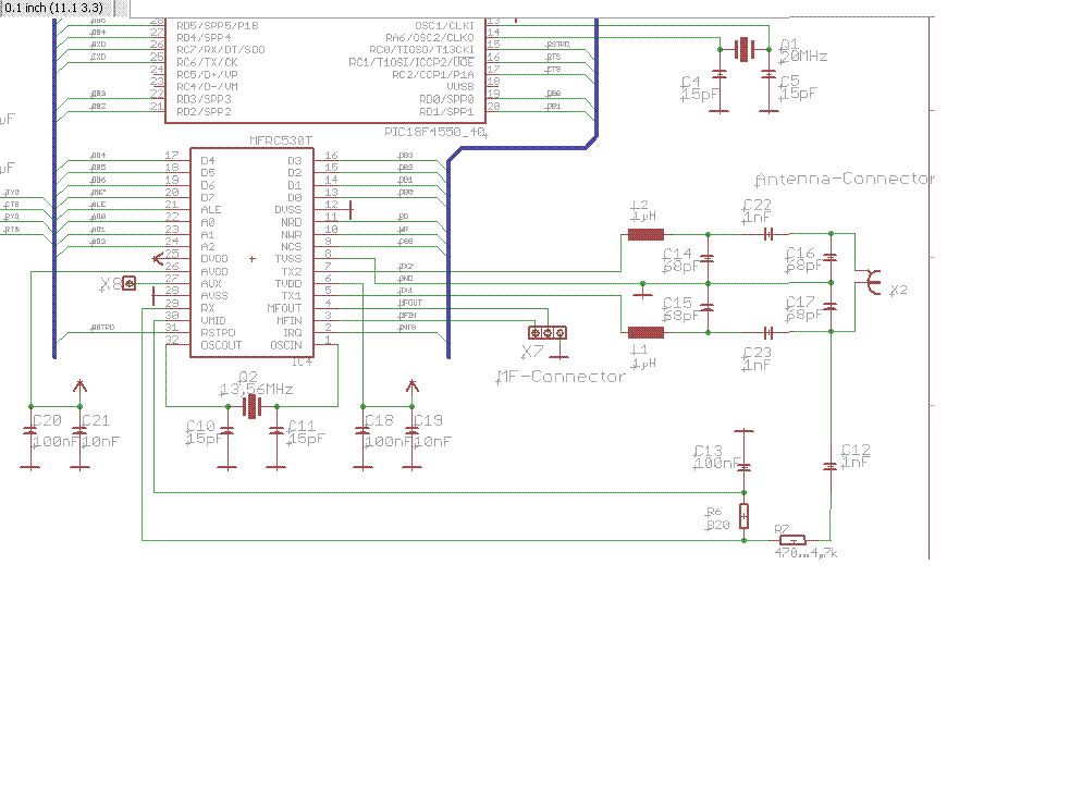 Hallo, habe eine Antennen anpaßschaltung für einen RFID Reader (MFRC 530 RFID Chip mit 13,56MHz und PIC18F4550) möchte damit 8 Antennen mit einem 3 aus 8 Decoder (74LS138N) ansteuern (in einer zweiten Platine). Um einzelne Antennen nacheinander nach dem RFID – Tag abzufragen. Weiß jetzt nicht wie das Layout aussieht bzw. wie ich die Schaltung für den Decoder aufbauen soll? Kann mir jemand Helfen ? Oder weiß wie ich die Schaltung realisiere ? Bedanke mich für jede Hilfe.
