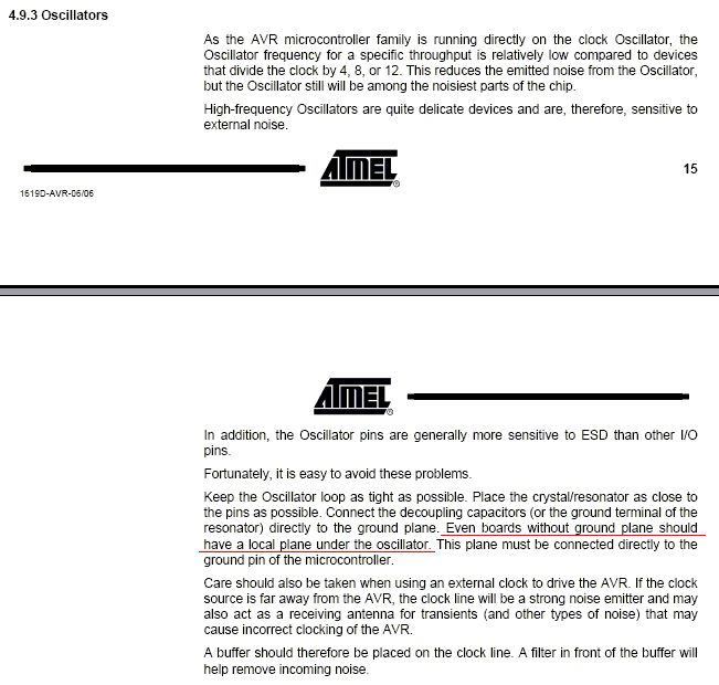 Auch die "application note AVR186" selbst http://www.atmel.com/dyn/resources/prod_documents/doc8128.pdf empfiehlt zur Abschirmung eine Massefläche unter dem Oszillator. Kai
