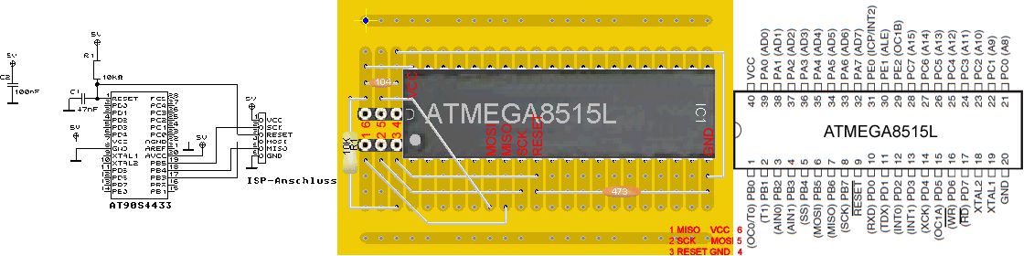 Mit fällt auf, daß die Zählweise Deiner 6-Poligen Buchse nach IC-Weise läuft, die Zählweise des Steckverbinders auf dem STK500 ist eine andere! IC-Zählweise: 6 5 4 1 2 3 Zählweise Stecker: (oder Pfostenstecker) 2 4 6 1 3 5 vielleicht ist da was schief gegangen? Gruß Seppl