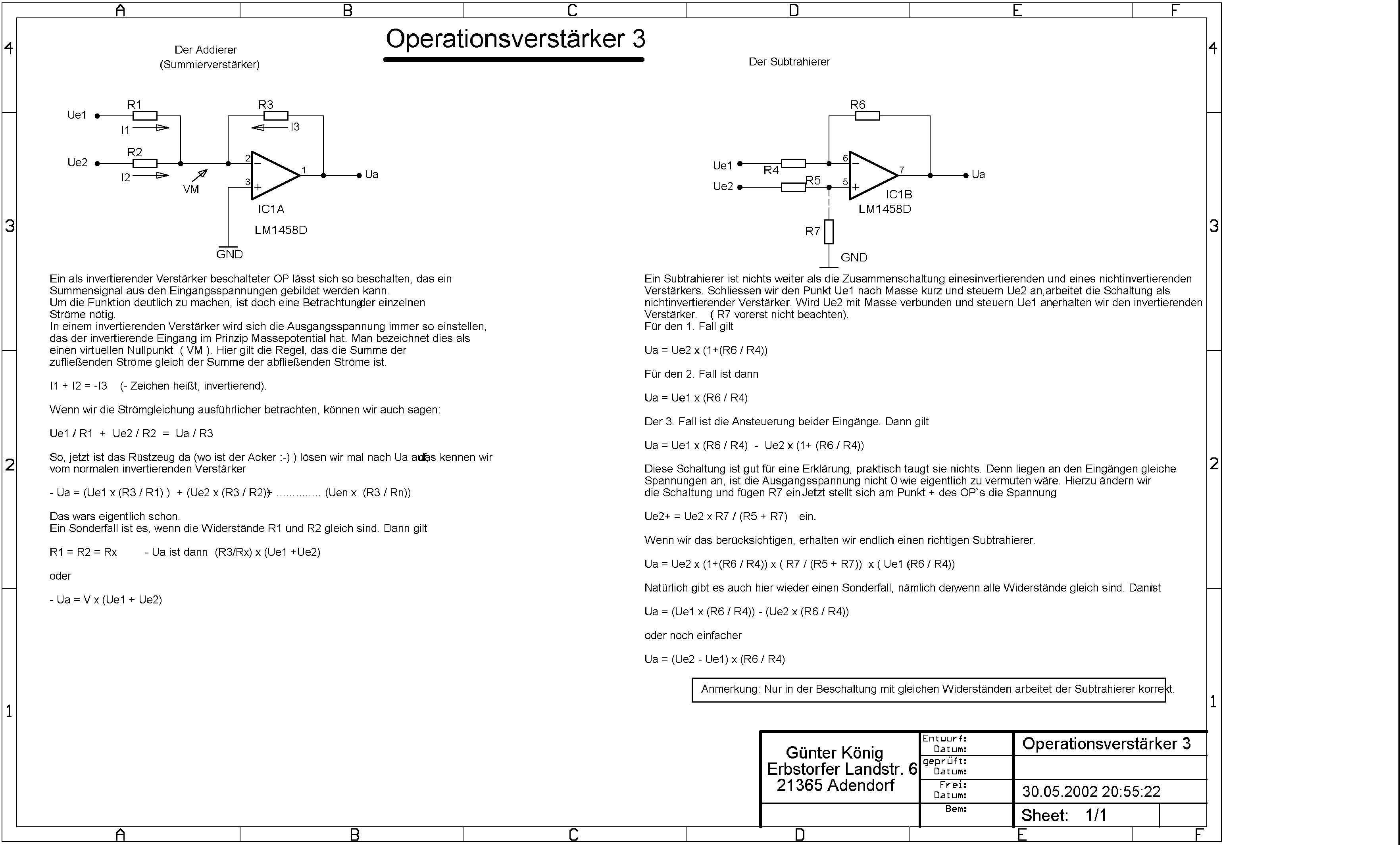 Danke, aber beachtet nicht so sehr die Seite -Operationsverstärker 3- , durch eine saumäßige Textformatierung sind Zeilen etwas daneben und verrutscht. Es sind tlws. Vorzeichen nicht erkennbar. Die Seite -Operationsverstärker 3.1- ist verbessert. Aber schönen Dank für die Blumen, Günter