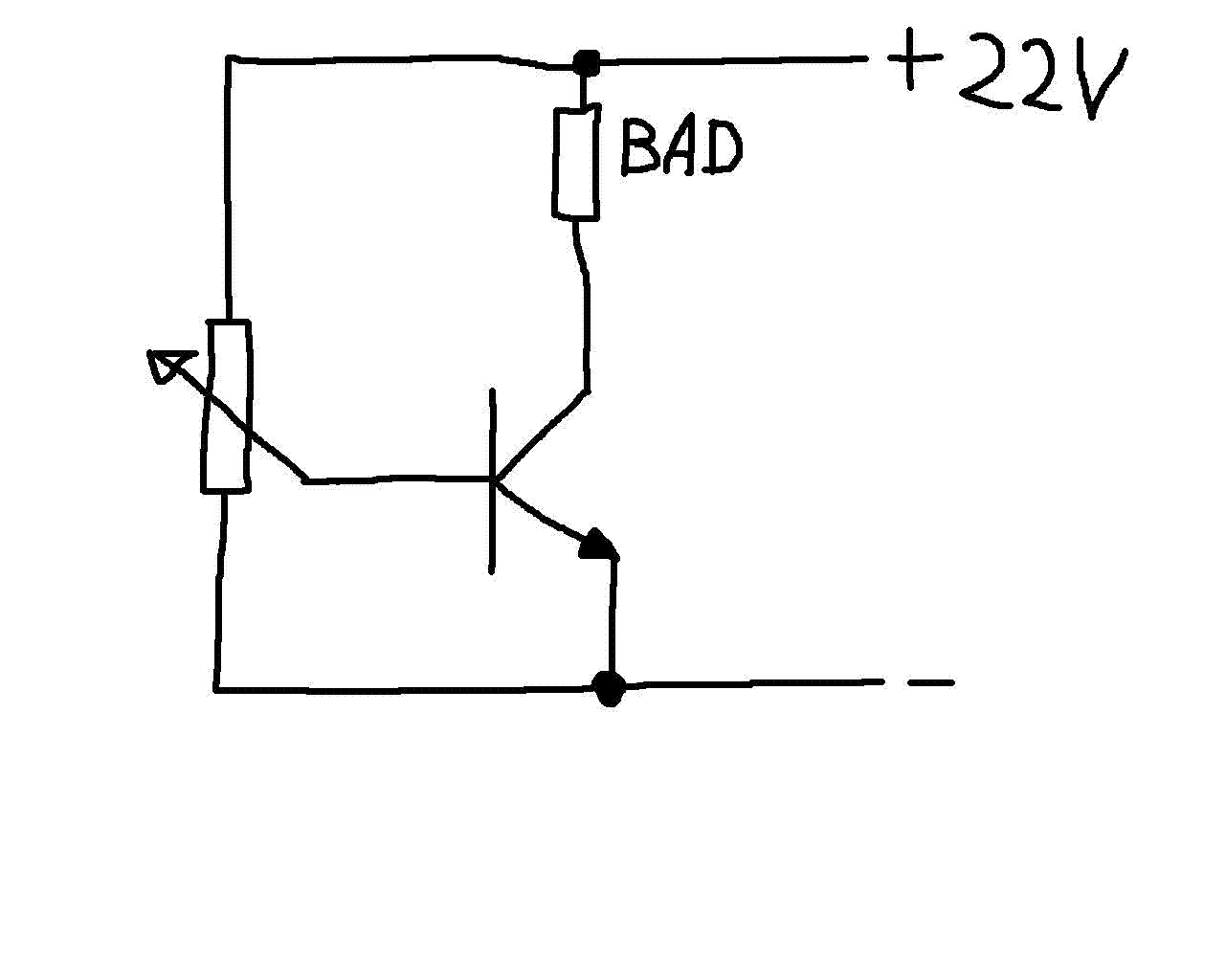 Man baut Konstantstromsenken anders, zwischen Emitter und Masse kommt eine Widerstand, der Spannungsabfall an dem Widerstand bestimmt den Strom, und die Spannung stellt man mit einem Poti an der Basis ein wie bei dir, damit das Poti aber nicht so doll belastet wird, nimmt man einen Darlington-Trransistor oder gar 3 kaskadierte bipolare Transistoren. +----+--+--+--Bad-- + | | | | Poti--|< | | | +-|< | | +-|< | |E | Widerstand ca. 1 Ohm 5 Watt | | +----------+-----