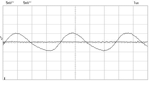 Hier der zugehörige Scopeplot. Man erkennt sehr deutlich, daß der LM7805 noch eine erhebliche Ripple Rejection bei 260kHz besitzt! Kai