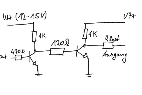 Hallo, ich habe grade das: http://www.sprut.de/electronic/pic/grund/o4.gif nachgebaut, allerdings mit bc547 und 557, und die Maxspannung stimmt, jedoch geht er nicht runter richtung 0V, sondern bleibt bei 3.8V. Als Scheinlast habe ich einmal 120 Ohm und einmal 47K genommen, selbes Ergebnis. Ich kriege langsam die Pimpanellen... wir habe hier sehr viele Logikteile, allerdings habe ich keine Fets oder ähnliches gefunden. Gruss und danke schonmal Atrur