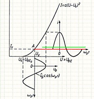 @Paul >Diese PINs hingen in der Luft. Nun mit dem LT1677 hängen >pin 1 und 8 immer noch in der Luft, aber das Datenblatt schweigt sich >aus zu diesem Fall. Kann es sein, das dies der Fehler ist? Paul, wie oft müssen wir dir noch sagen, daß du die HF wegfiltern mußt??? >Und noch mal die Frage woher der 0.5V Offset kommen kann? Hast du überhaupt gelesen, was ich geschrieben habe??? Die unlinearen Kennlinien der Innereien des OPamp führen zu einer Gleichrichtung der unverdaulichen HF, was deinen DC Offset bewirkt. Ich habe im Anhang ein Bildchen beigefügt, bei dem eine quadratische Kennlinie gezeigt ist. Die rote Linie ist der DC Level ohne HF Sinus, die grüne Linie der DC Level mit HF Sinus. Wenn der Verstärker also nicht mehr in der Lage ist, die Hf linear zu verstärken, dann schafft er nur noch die DC Level Verschiebung. Was du am Ausgang dann siehst ist eben ohne HF die rote Linie und mit HF die grüne Linie. Kai Klaas