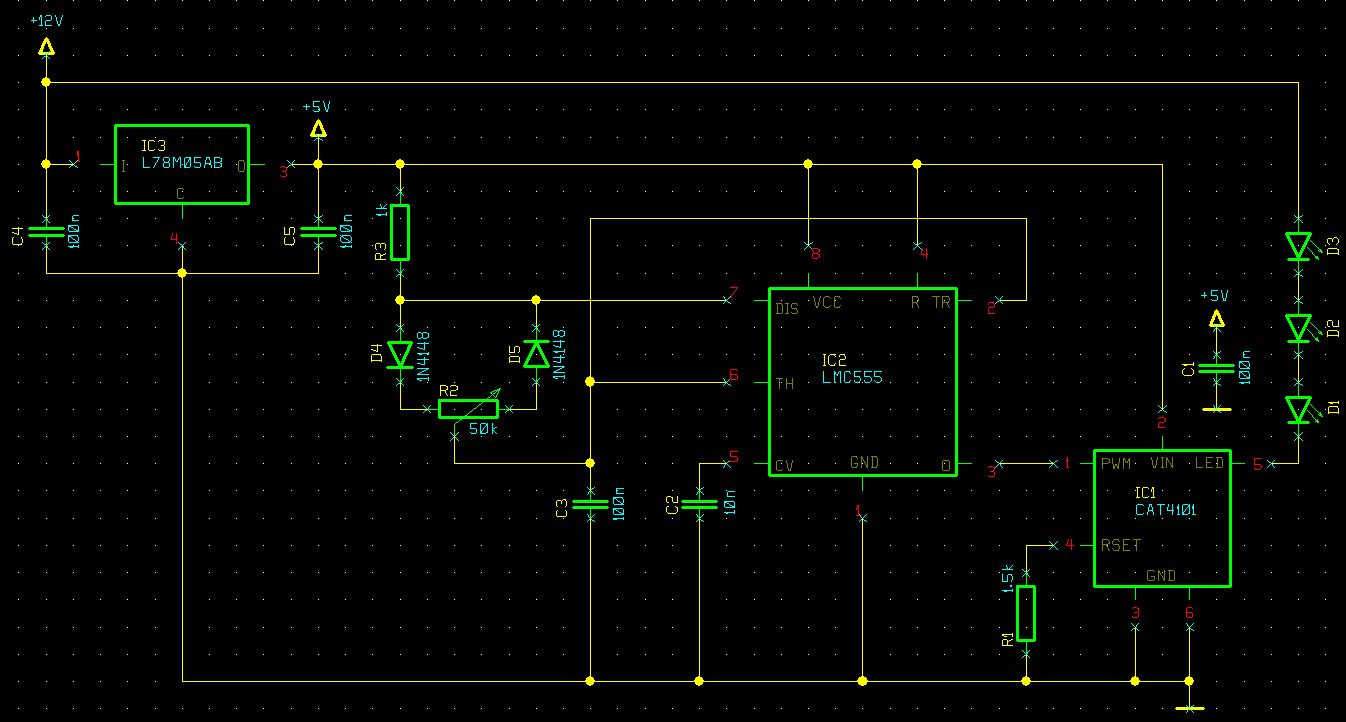 Salu zusammen Ich habe eine kleine Schaltung gebaut um drei Power LED zu dimmen. Mein Problem ist nun, dass das Dimmen zwar funktioniert, aber ich komme nicht auf 0. Das heisst, die LED leuchten immer ein wenig. Möchte das aber wenn möglich nicht. Also wenn ich den Dimmer auf min. drehe möchte ich, dass keine LED leuchtet. Kann mir vielleicht jemand sagen wie ich das mit der angehängten Schaltung erreiche? Über Hilfe würde ich mich freuen Gruss Guest