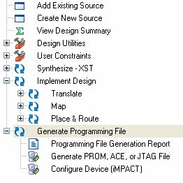 Hi Leute, weiß zufällig jemand, wie ich mit dem Xilinx ISE 11 ein bit-file oder bit-stream-file erzeuge? ich seh den Wald vor lauter Bäumen nicht... und die suche brachte mich auch nicht weiter. Ich experimentiere gerade mit einem FTDI chip und da brauch ich ein bit file. wie schauts eigentlich bei dem ISE 11 mit den Spartan 2 FPGA´s aus? ich habe ein XC2S100 aber leider finde ich den unter den Typen nicht... Werden die nicht mehr unterstützt? oder gibts da was kompatibles oder muss ich die Spartan2 Reihe irgendwie einbinden? Danke schon mal und AnfängerGruß Spice