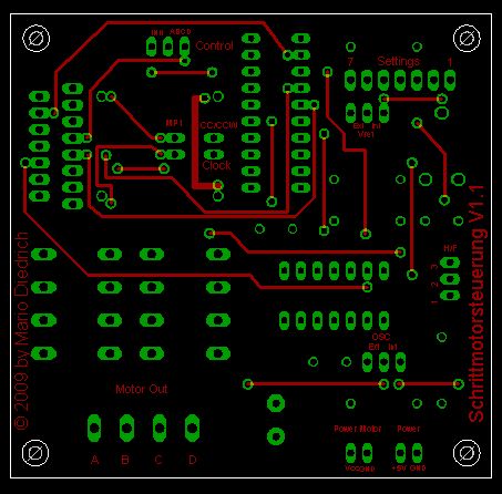 >@Michael: das ist nur teilweise ein Autorouterlayout. Hab mehre Stunden >daran gebastelt und es nicht einseitig hinbekommen Deshalb ja mein Tipp mal in das Datenblatt vom L298 zu schaun, da ist die Kombination L297-L298 drin mit einseitigem Platinenlayout. Da noch den 4011 dazu zu basteln sollte bei weitem net schwer sein und ebenfalls einseitig möglich sein. SO viel haste ja nun auch nicht auf'm Board drauf.