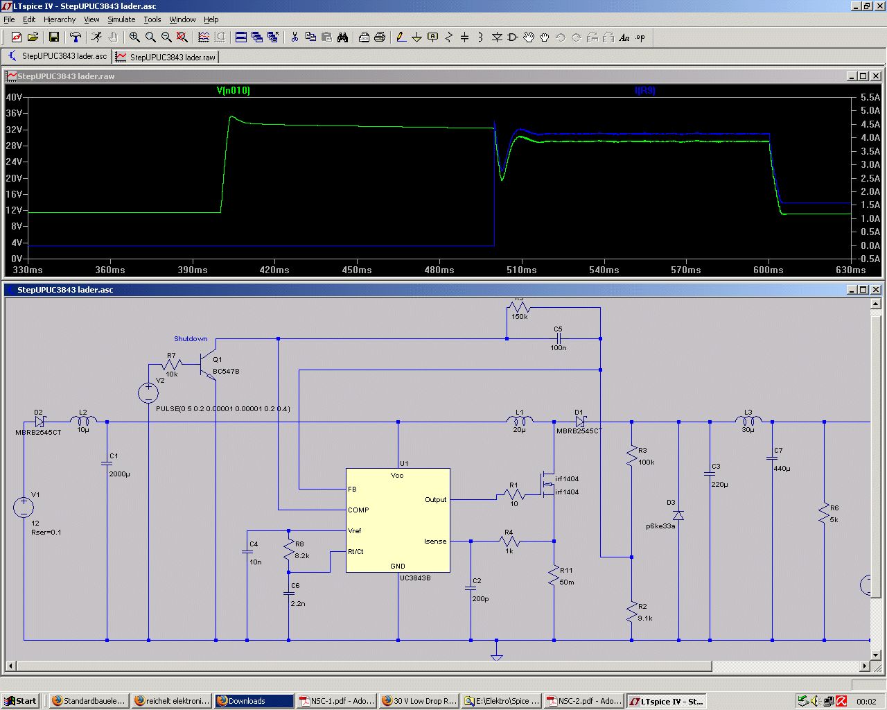 Hallo, werde ich mal versuchen. Der Regler wird von 0 - 5 A belastet. wenn die Last abgeschalten wird kommt es wie auch beim einschalten zum überschwingen. als regler ist ein UC 3843 Na ich hoffe man kann auf dem Bild die Schaltung noch erkennen. beim einschalten und bein anschließen der Last überschwingr der Regler. Danke und Grüße Tom