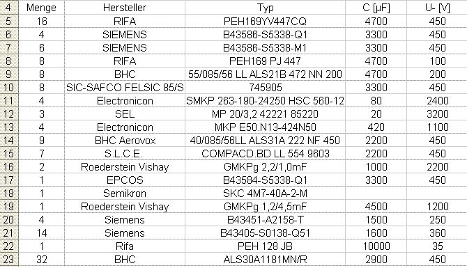 Da sind ja einige interessante Kondensatoren bei. Interesse besteht an 450 V Kondensatoren und größere Typen. Vor allem an der Nummer 5 und 23, da die ja doch in etwas größeren Stückzahlen vorhanden sind.