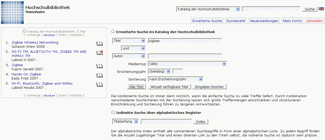 Hier in der Hochschulbibliothek sind beispielsweise diese Bücher mit Zigbee im Titel vorhanden. Google-Books http://books.google.com/advanced_book_search?hl=de oder Amazon helfen auch weiter. https://webpac4.bsz-bw.de/WP.mafh.html