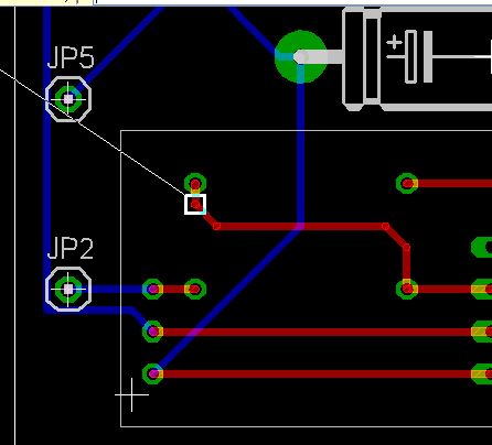 Der Kondensator ist lockert das Design etwas auf ;-) Nur noch den Route-Button druecken ... und fertsch isses (level_middle_brd_routed.GIF) ... dachte ich. Der DRC (obwohl alles auf 0 gesetzt) spuckt ueber den Zellen Fehler aus - Mist !!! (level_middle_brd_routed_drc.GIF)