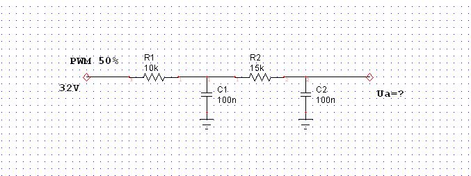 Ich habe foglende Formel: Ua/Ue=1/sqrt((2*pi*f*C*R)^2+1) f ist 10k, C =100nF, R=10k, Ue=32V Ich möchte Ua nach dem ersten Glied berechnen. als Ergebnis für Ua bekomme ich: 0,5V raus. Das kann doch dann nicht hinhauen, wenn bei PWM 50%= 16V rauskommen soll.