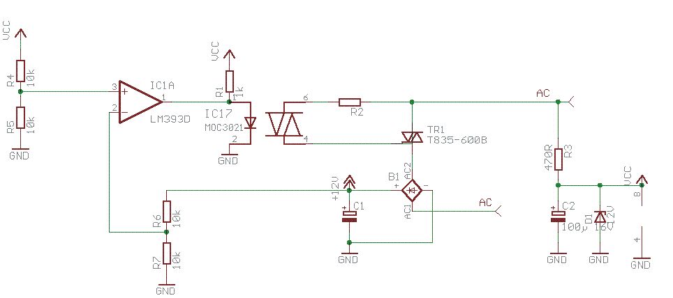 Ok, war ich wohl etwas zu langsam beim Tippen und verstehen. Ich will ja kein geregeltes Schaltnetzteil. Die Spannung darf zwischen 12V und 13,4V machen was sie will. Ich brauch bloß einen Ersatz für eine nicht mehr erhältliche Lichtmaschine. Ich glaub ich hab jetzt bei Peters Schaltung einigermaßen durchgeblickt. Vcc-Erzeugung klar, Vergleich Vcc/2 durch +12V/2 auch klar. Aber warum gehst du nicht vom OPV direkt an TR1? Warum kommt da ein Optokoppler dazwischen? Muss das Gate vom Triac nicht auf eine positive Spannung gelegt werden, damit der leitet? Da wird es doch über R2 an die Eingagnswechselspannung angeschlossen. Ich seh schon, ich hätt mich doch für Etechnik statt Maschinenbau einschreiben sollen...