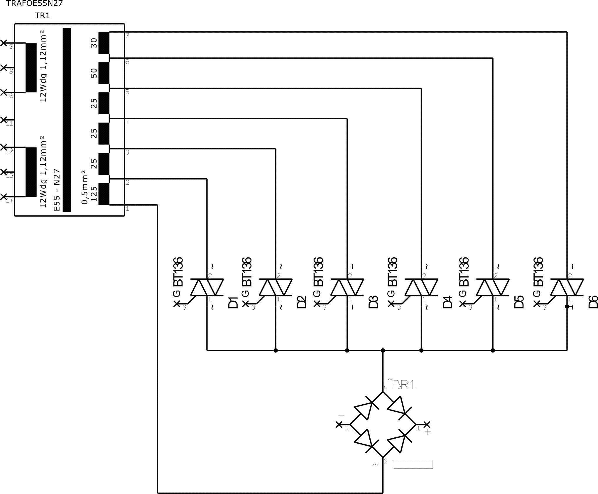 Geht es um mehr als 50 Hz? (2*12 zu 125 plus x Wdg.) Bei einem Schaltnetzteil wird die Auswahl der Thyristoren von der Schaltfrequenz abhängig.